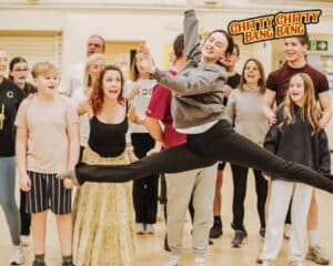 The company of CTC rehearse Chitty Chitty Bang Bang: