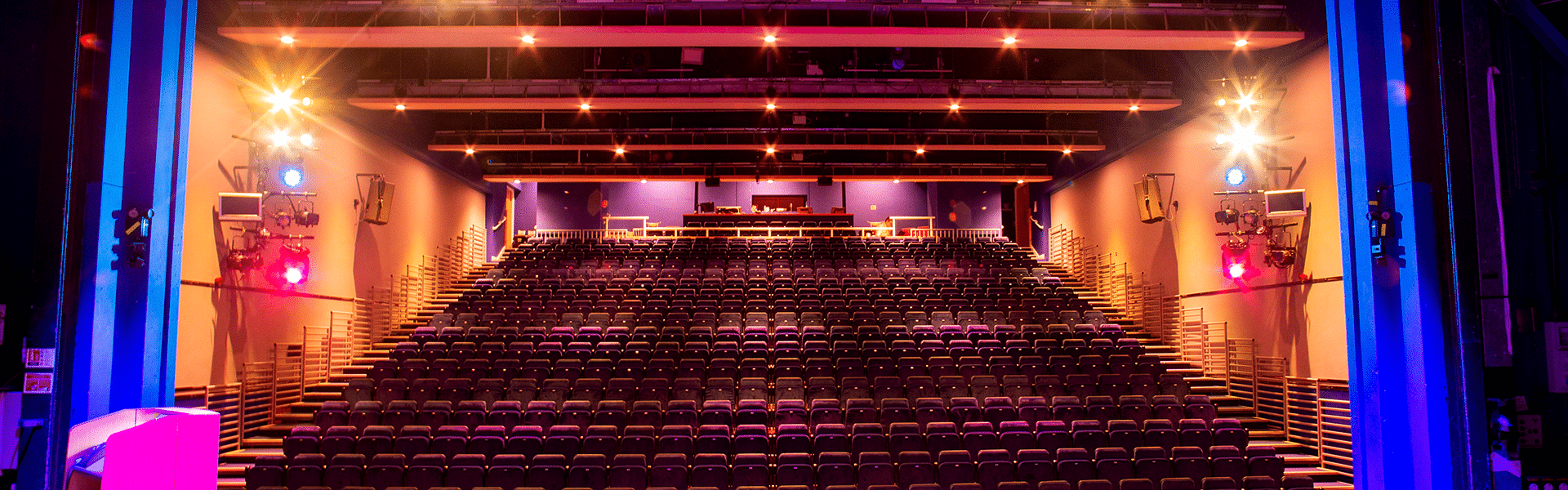 Loughborough Town Hall runs a sophisticated lighting rig of mostly LED fixtures with a handful of generics. Touring companies are welcome to make use of the venue rig, as well as fly their own on our counterweight fly bars.